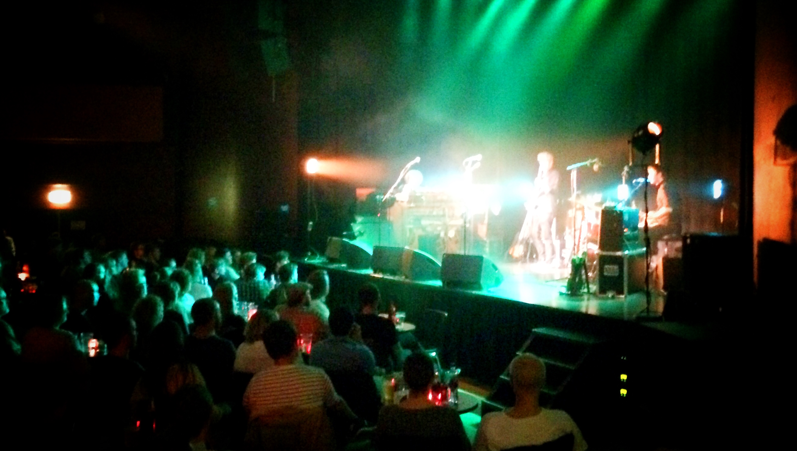 For 350 kroner billetten slapp vi inn i konsertlokalet. Oppsettet virket lovende; på scenen stod en schvæær B3 med Leslier og hele pakka, et OK trommesett, og noen bass og gitarforsterkere jeg ikke gadd studere (vi hadde vært noen timer utpå allerede). Publikum var en litt underlig blanding av hipstere, Harvest-lesere, hjemmeværende studenter og andre som prøvde å se ut som de var voksne på søttitallet. Det var tett av bord i salen, helt inn til scenekanten, så vi skjønte at dette kom til å bli jazz, ja.